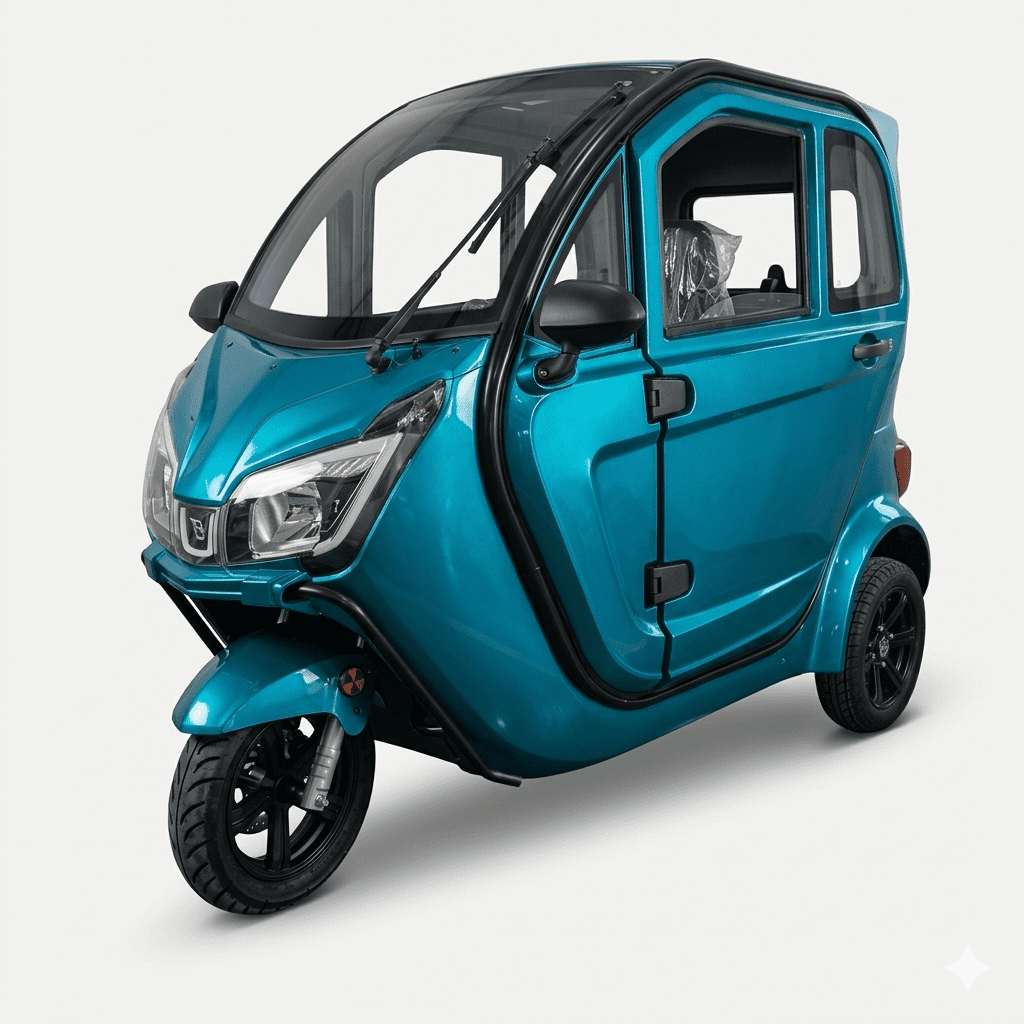 Kabinescootere fås som 3-hjulede og 4-hjulede elektriske køretøjer. De 3-hjulede modeller er lette, manøvredygtige og ideelle til kortere ture, mens de 4-hjulede modeller giver ekstra komfort, stabilitet og plads til 2 personer.