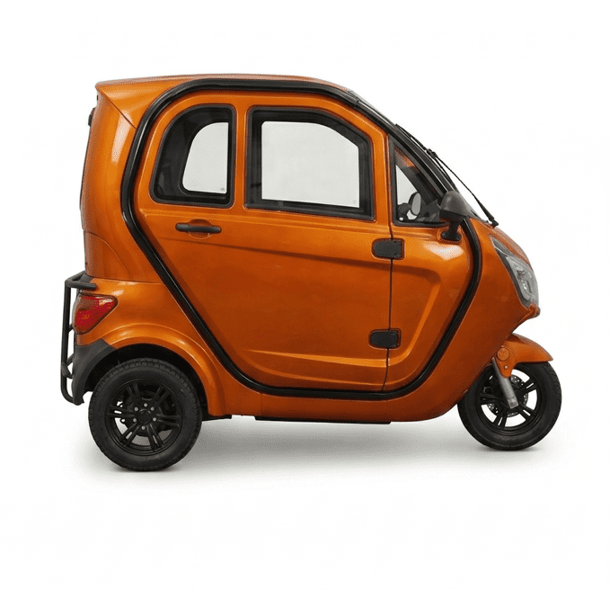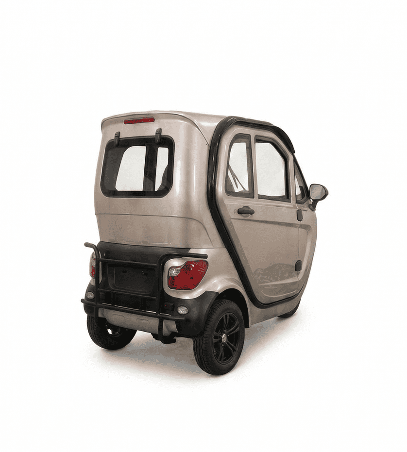 Denne el-drevne kabinescooter er skabt til det danske vejr og giver dig friheden til at besøge vennerne, køre til indkøb eller tage børnebørnene med på tur – uanset om det regner eller blæser.
