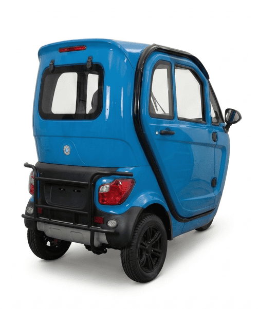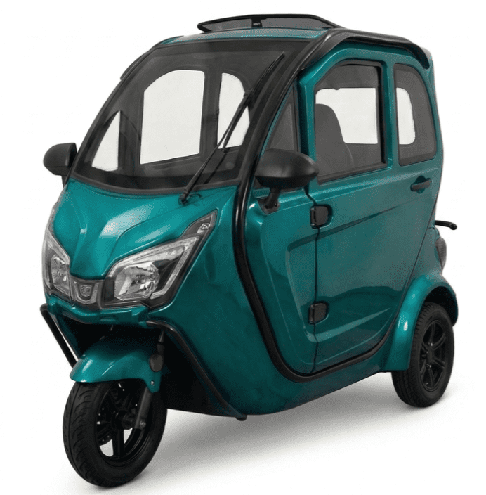 Denne el-drevne kabinescooter er skabt til det danske vejr og giver dig friheden til at besøge vennerne, køre til indkøb eller tage børnebørnene med på tur – uanset om det regner eller blæser.